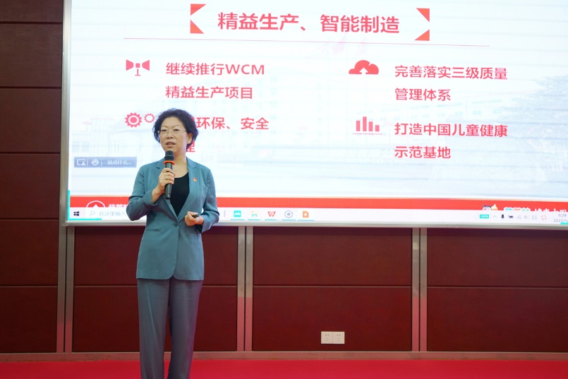 作为海南省第八次党代会代表,刘景萍董事长在参加完省第八次党代会后,提出GD视讯药业集团要坚持“党建引领企业发展”,在一季度总结表彰会上以“蓝图绘就,指引未来——打造中国儿童健康领军企业”为主题讲话。