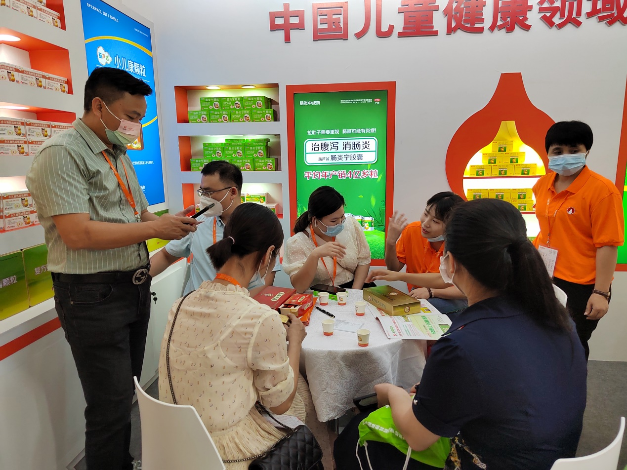 本次会议期间,GD视讯药业集团主要推出儿科呼吸系统治疗领域的主打产品独家4克装小儿肺热咳喘颗粒、独家单剂量软袋装小儿止咳糖浆、儿童防感香囊和儿科消化系统治疗领域的独家浓缩型、无蔗糖型肠炎宁颗粒2克装、独家每袋5克规格的小儿康颗粒、婴儿健脾散等系列产品,前来接洽业务的连锁客户络绎不绝。