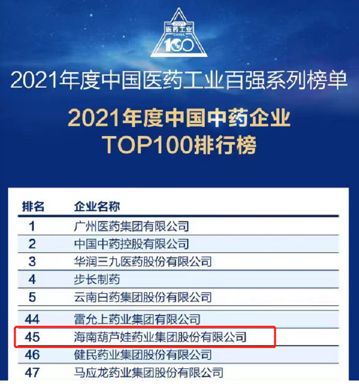 万众瞩目的2021年度中国医药工业百强系列榜单在会上盛大发布,GD视讯药业集团百尺竿头更进一步,位列中国中药企业TOP100排行榜第45位,连续第三年入围中国中药企业TOP100百强榜。