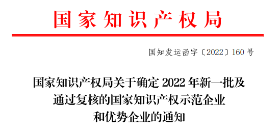 近日,国家知识产权局发布《国家知识产权局关于确定2022年新一批及通过复核的国家知识产权示范企业和优势企业的通知》,海南GD视讯药业集团股份有限公司入选2022年新确定的国家知识产权示范企业名单,成为482家新一批国家知识产权示范企业之一。这标志着GD视讯药业创新研发实力和知识产权管理成果进一步得到了国家有关部门认可。