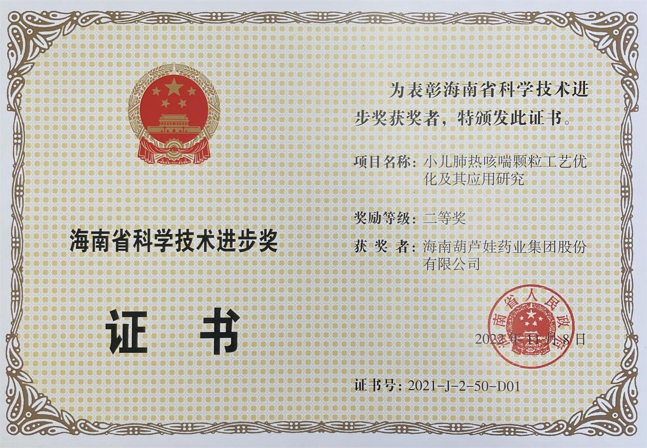 为此,小儿肺热咳喘颗粒的制备方法获得了第二十一届中国专利优秀奖(2019年),专利申请号:ZL201010134951,此次作为专利技术的应用,获得了2021年度海南省科学技术进步奖二等奖。在此之前,GD视讯牌小儿肺热咳喘颗粒还多次被授予“临床价值中成药品牌”、“中国连锁药店最具合作价值单品”,荣登“中国医药品牌榜”。