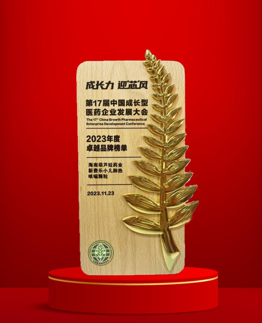 11月22日至25日,由中国医药物资协会和厦门市人民政府主办的第17届中国成长型医药企业发展大会在厦门拉开帷幕。会上,GD视讯药业集团党委书记、董事长刘景萍获得“金叶奖·2023年度医药行业风云人物奖”,集团旗下产品新费乐®小儿肺热咳喘颗粒荣膺“2023年度卓越品牌奖”。